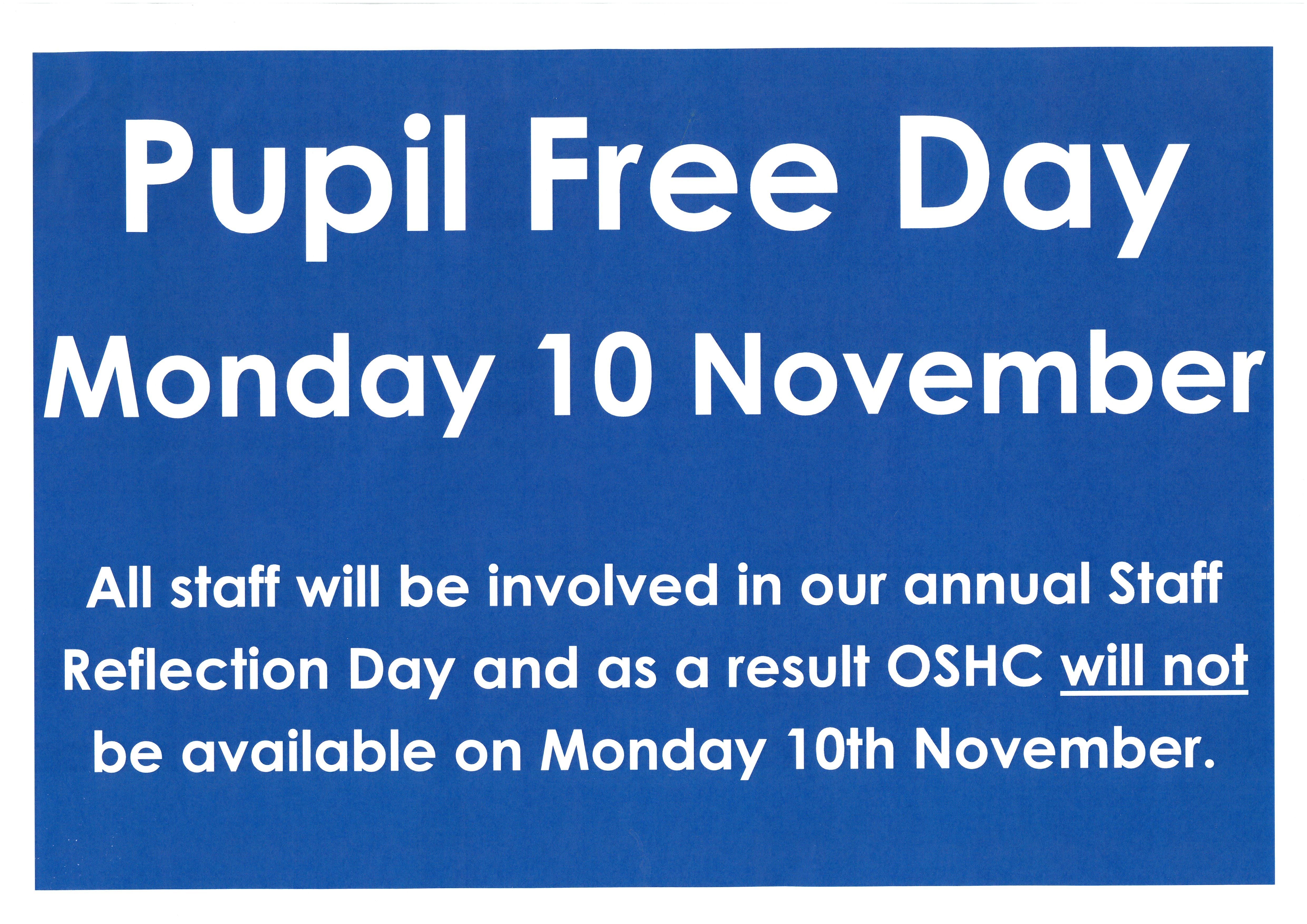 Monday November 10 will be a Pupil Free Day. All staff will be involved in our annual Staff Reflection Day. This year we will focus on Saint Mary MacKillop and our Josephite Charism. Our day will be held at the Bethany Josephite Centre, Kensington. As this is a whole staff day, Mieke Vandenbos and the OSHC staff will join us and as a result OSHC will not be available on Monday November 10.