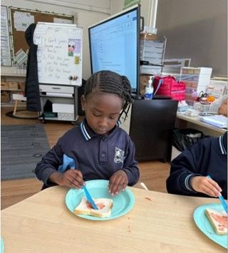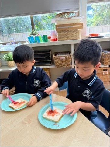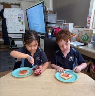 To bring our learning to life, we made jam sandwiches together! The children carefully thought out the steps and then followed each step before enjoying their creations.