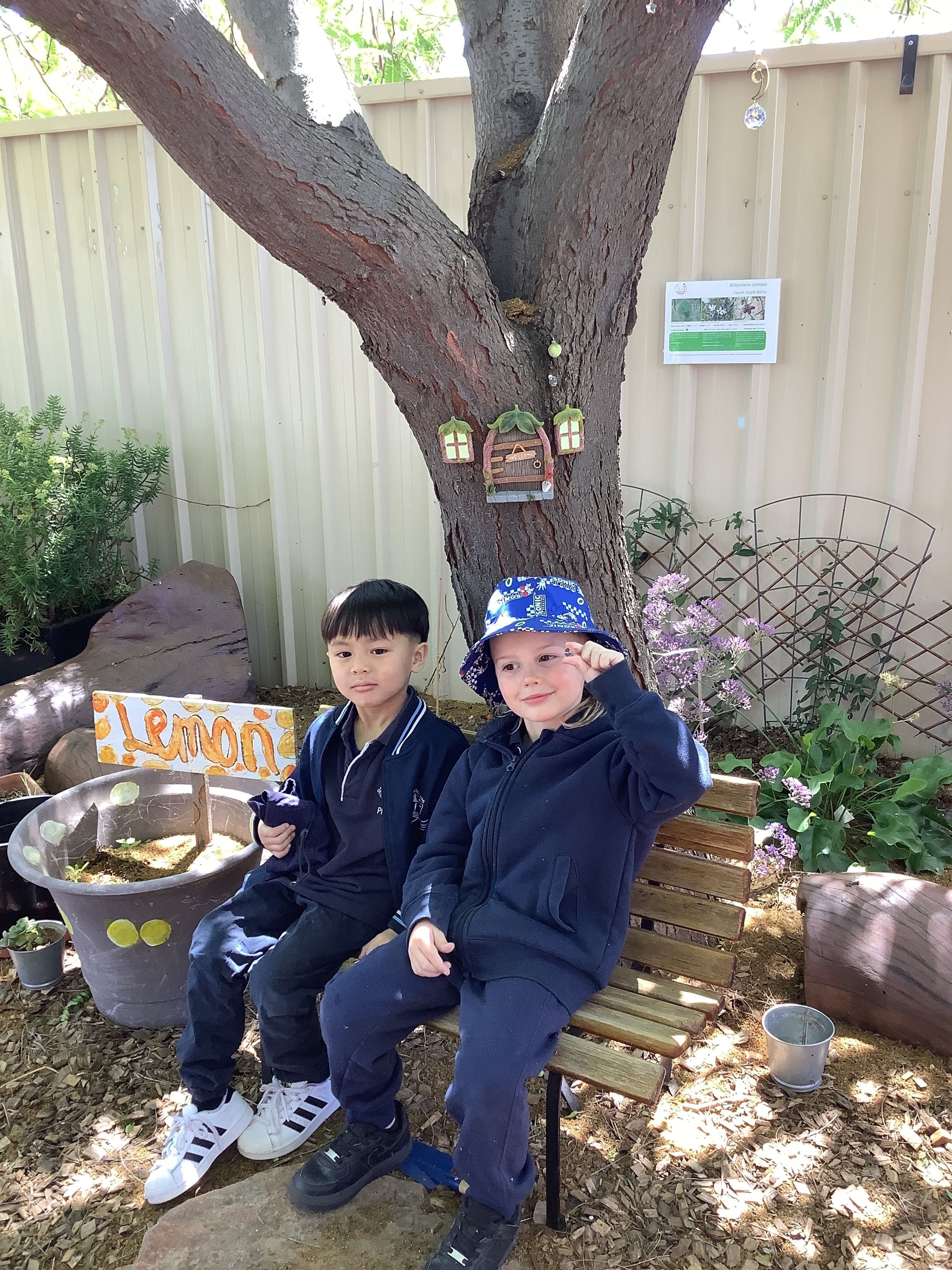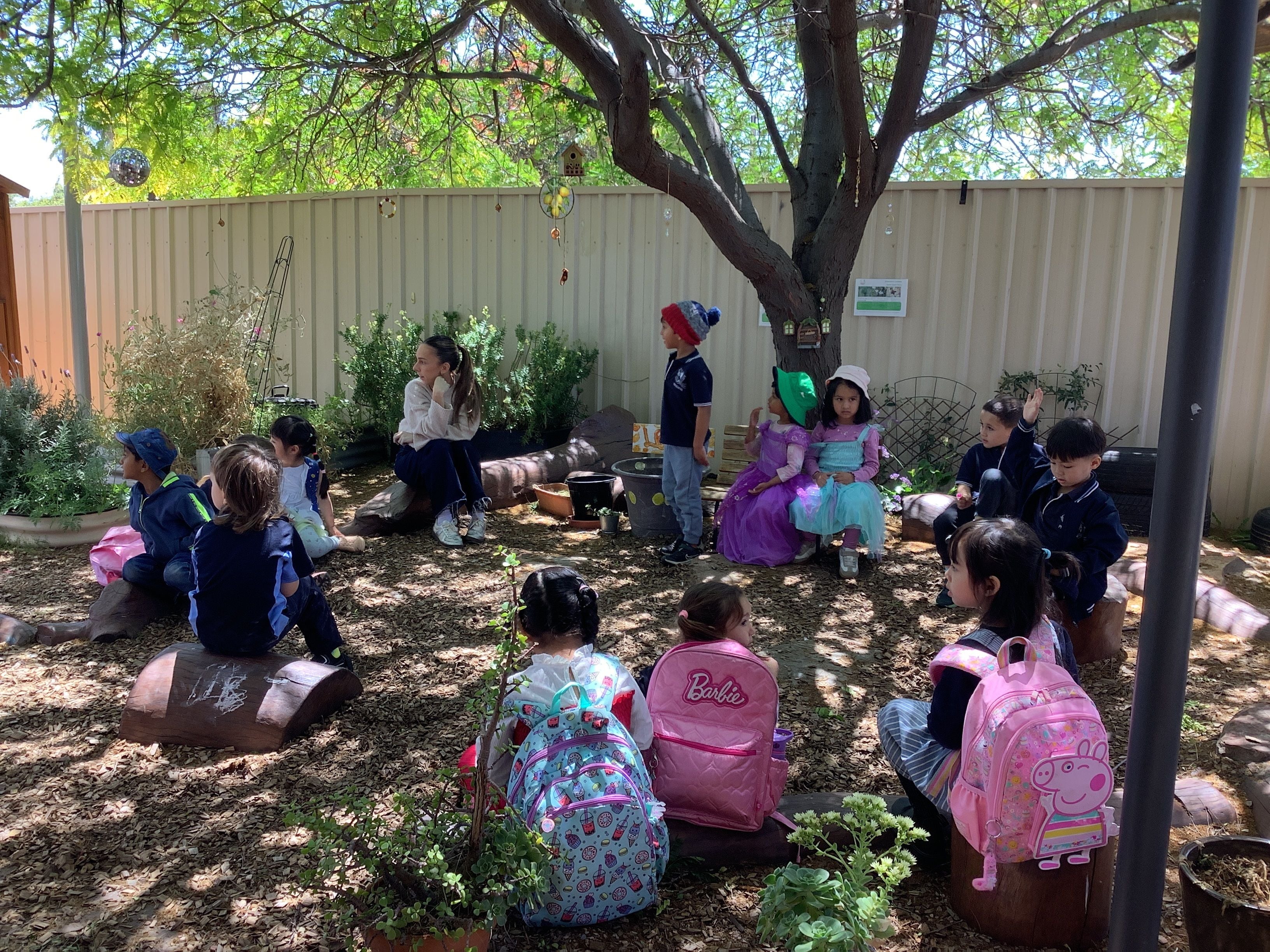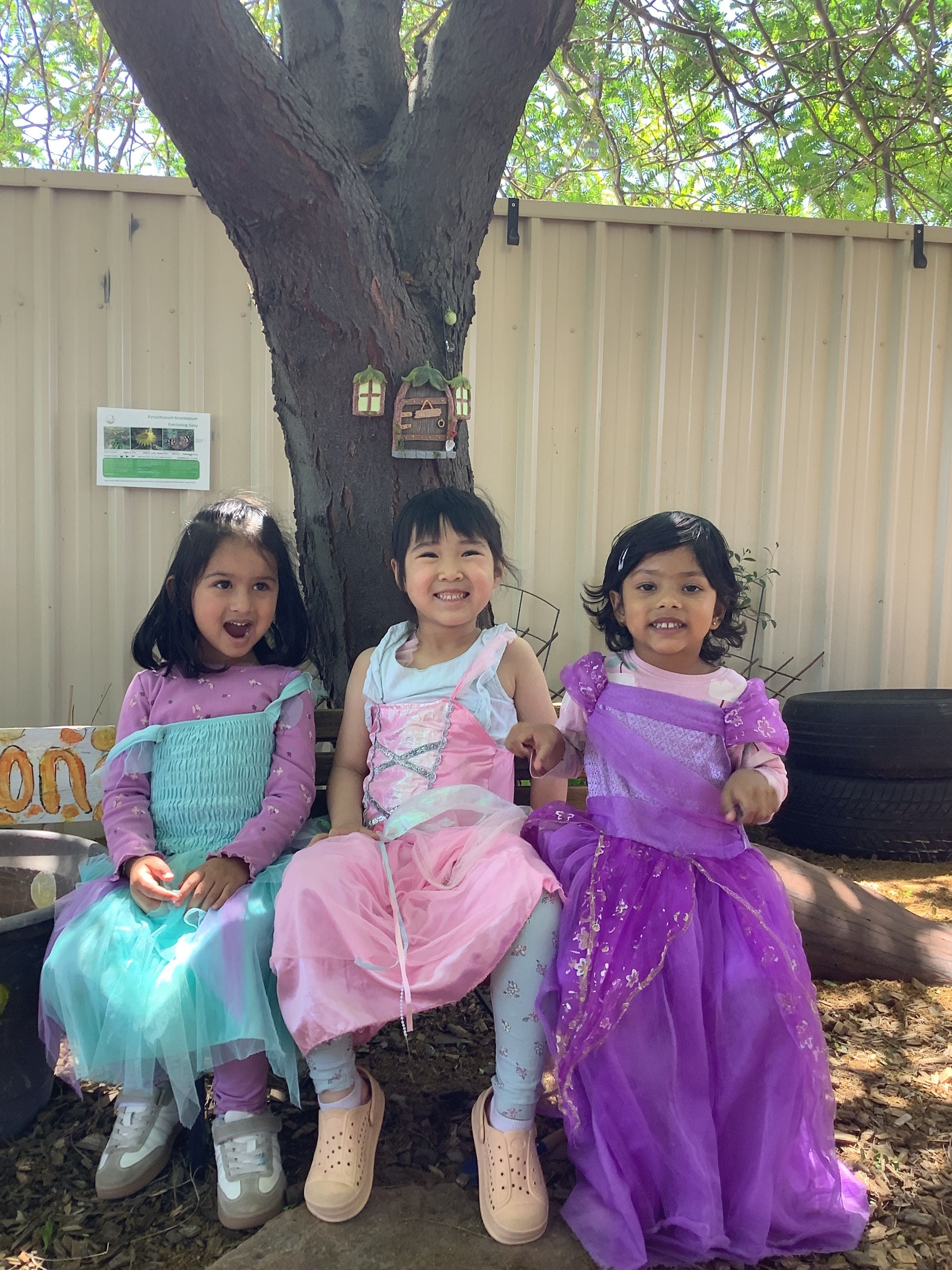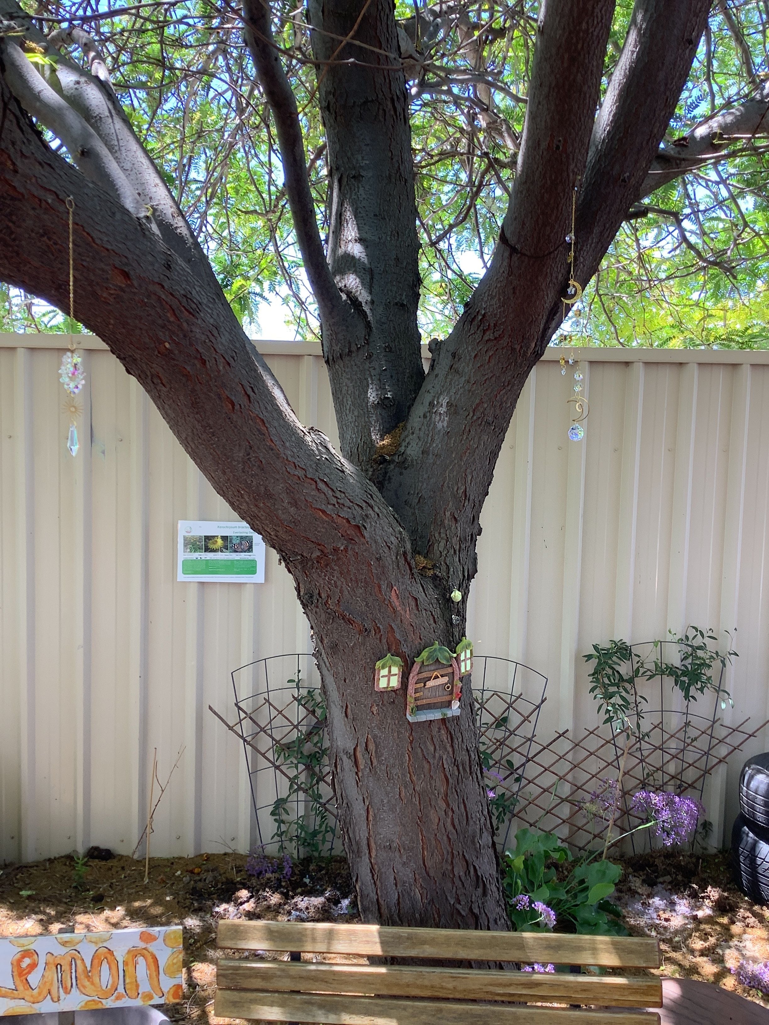 The Preschoolers added some beautiful new touches to our garden! We hung up colourful suncatchers and even added a fairy door and windows to the big tree. Oz and Akida helped Miss April hang them up, while Imelda, Catherine and Nayara loved singing their fairy song underneath the tree — bringing a little bit of magic and imagination to our outdoor space.