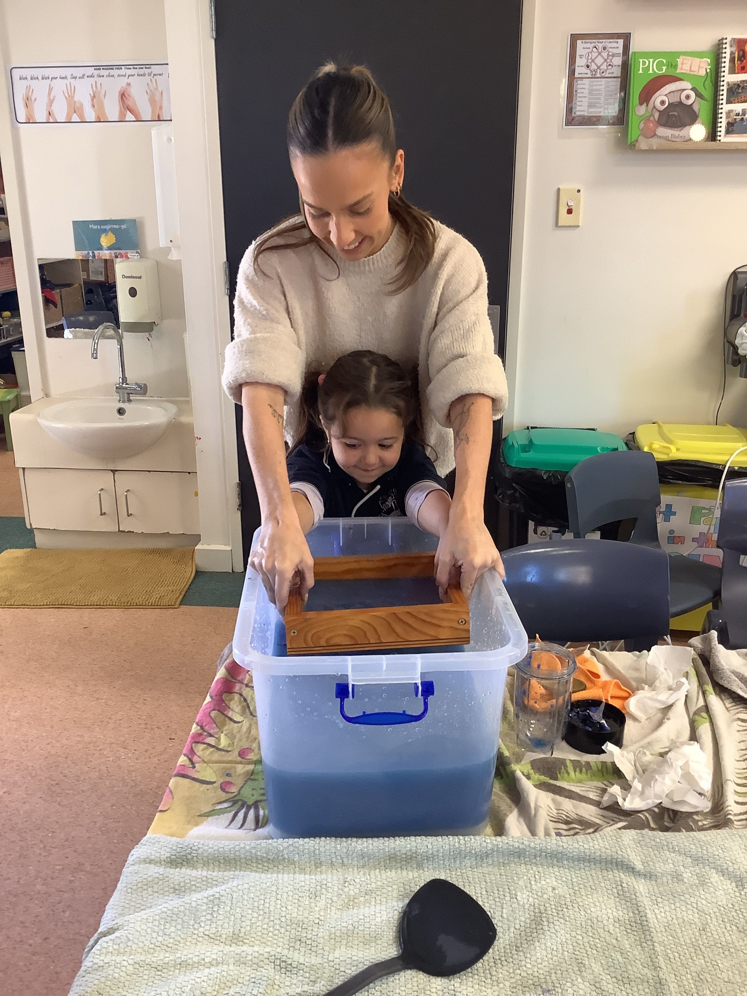 Last week, we explored National Recycling Week by making our own recycled paper! The children were excited to take part in each step — from hand shredding old paper (great for building hand strength and fine motor skills) to mixing, pressing, and drying their new sheets.