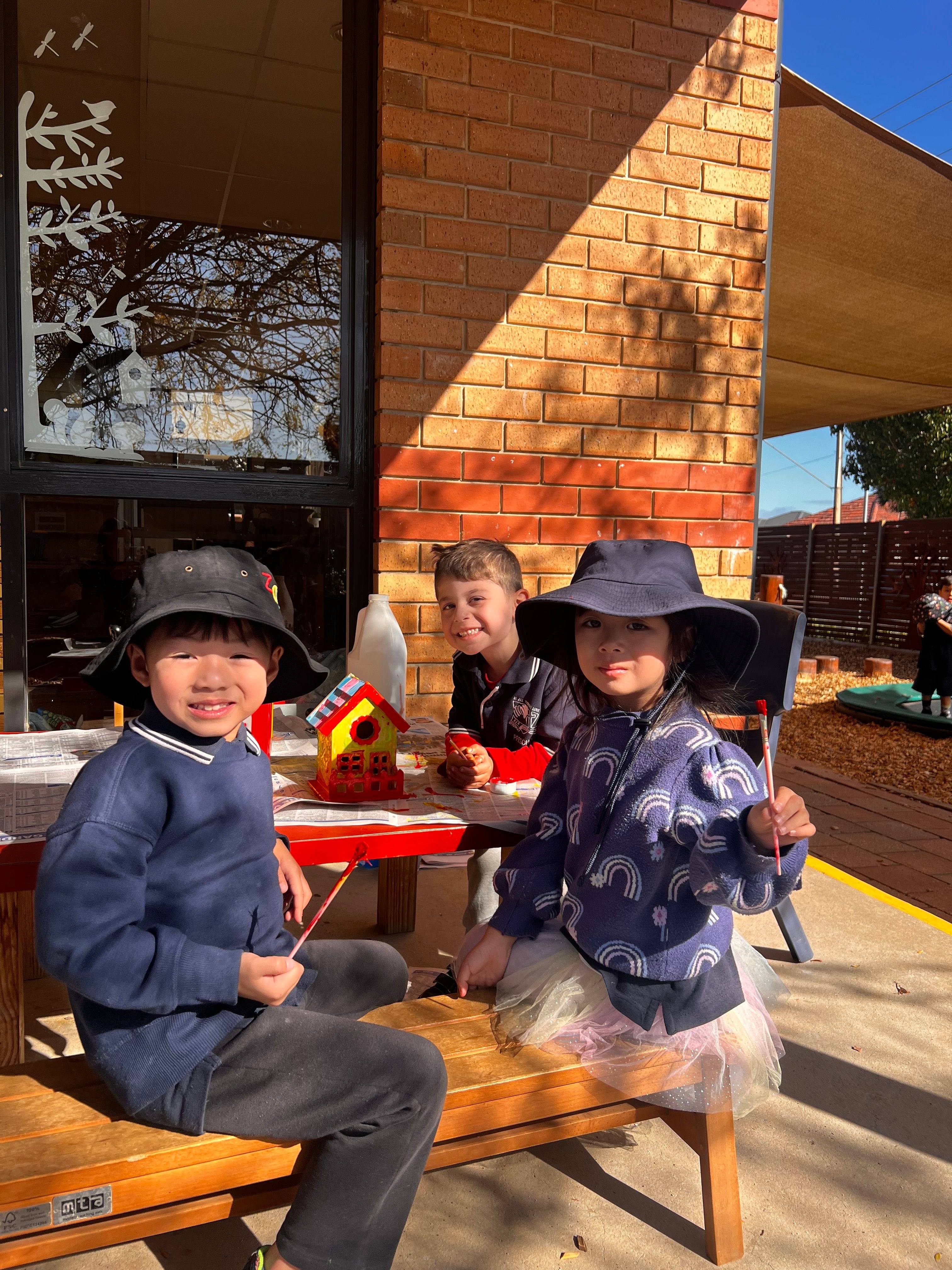 We've made some exciting updates to our preschool yard! The cubby now has soft curtains, creating a cozy space that sparks imaginative play. We also painted a birdhouse with the children, which now hangs in a tree. It’s been a great way to connect with nature and has already sparked lots of curiosity and conversations outdoors.